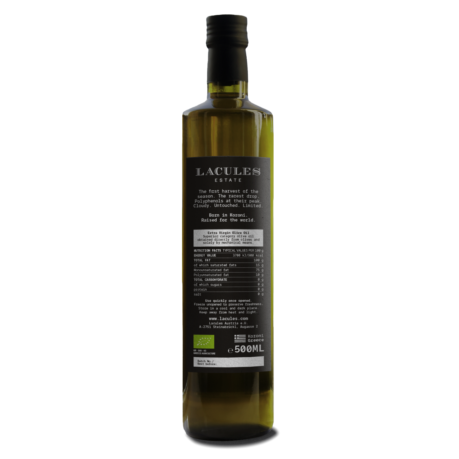 ”Lacules Olivenöl – frisch von der Mühle” kommt direkt am Tag der Ernte pur und naturtrüb in die Flasche und gelangt so innerhalb weniger Tage von unseren griechischen Olivenbäumen auf Ihren Tisch.